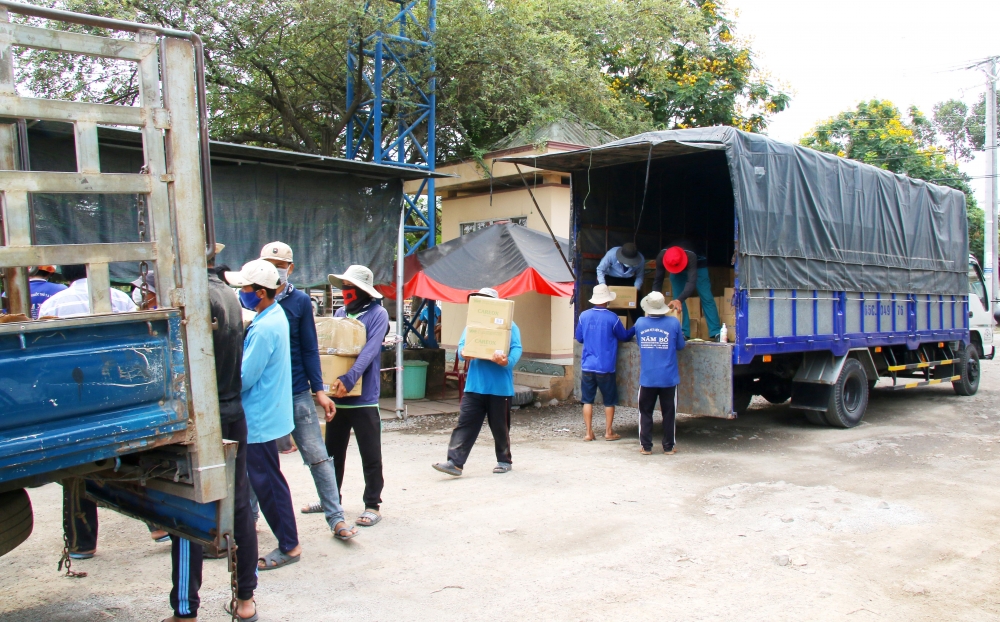 Chuyển nhu yếu phẩm, vật tư y tế hỗ trợ cộng đồng người Khmer gốc Việt tại Campuchia - Ảnh: thoidai.com.vn |