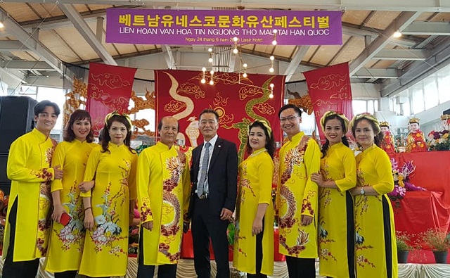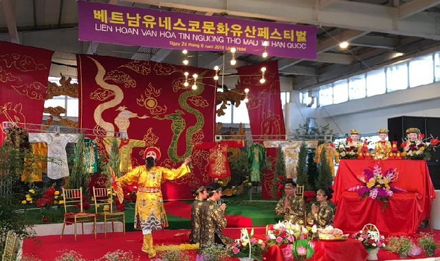 Kỷ niệm hai năm sự kiện “Thực hành Tín ngưỡng thờ Mẫu Tam phủ của người Việt” được UNESCO công nhận là di sản văn hóa phi vật thể đại diện của nhân loại, Liên hoan văn hóa tín ngưỡng thờ Mẫu tại Hàn Quốc vừa diễn ra ngày 24/6 tại thủ đô Seoul, Hàn quốc. Chương trình do Công ty cổ phần dịch vụ truyền thông Việt Ba phối hợp với Hội Nghệ sĩ sân khấu Việt Nam và Trung tâm Văn hóa Việt Nam tại Hàn Quốc tổ chức dưới sự bảo trợ của Đại sứ quán Việt Nam tại đây.