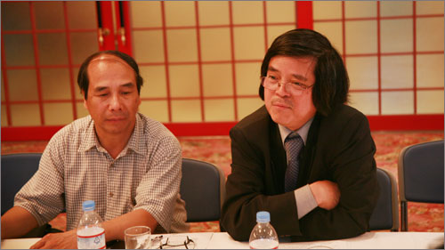 | Giáo sư Hồ Tú Bảo (trái) và Giáo sư Trần Văn Thọ |