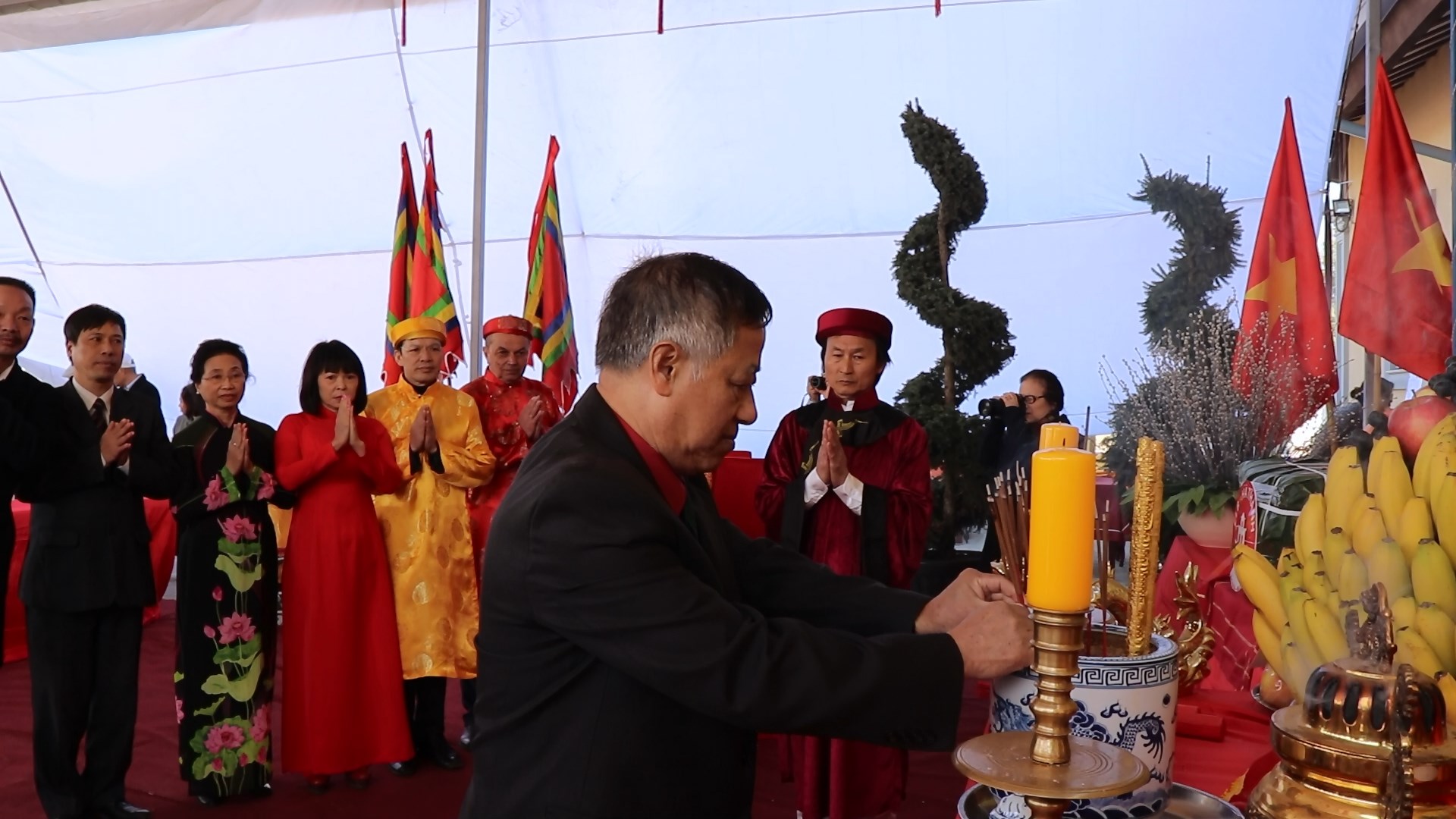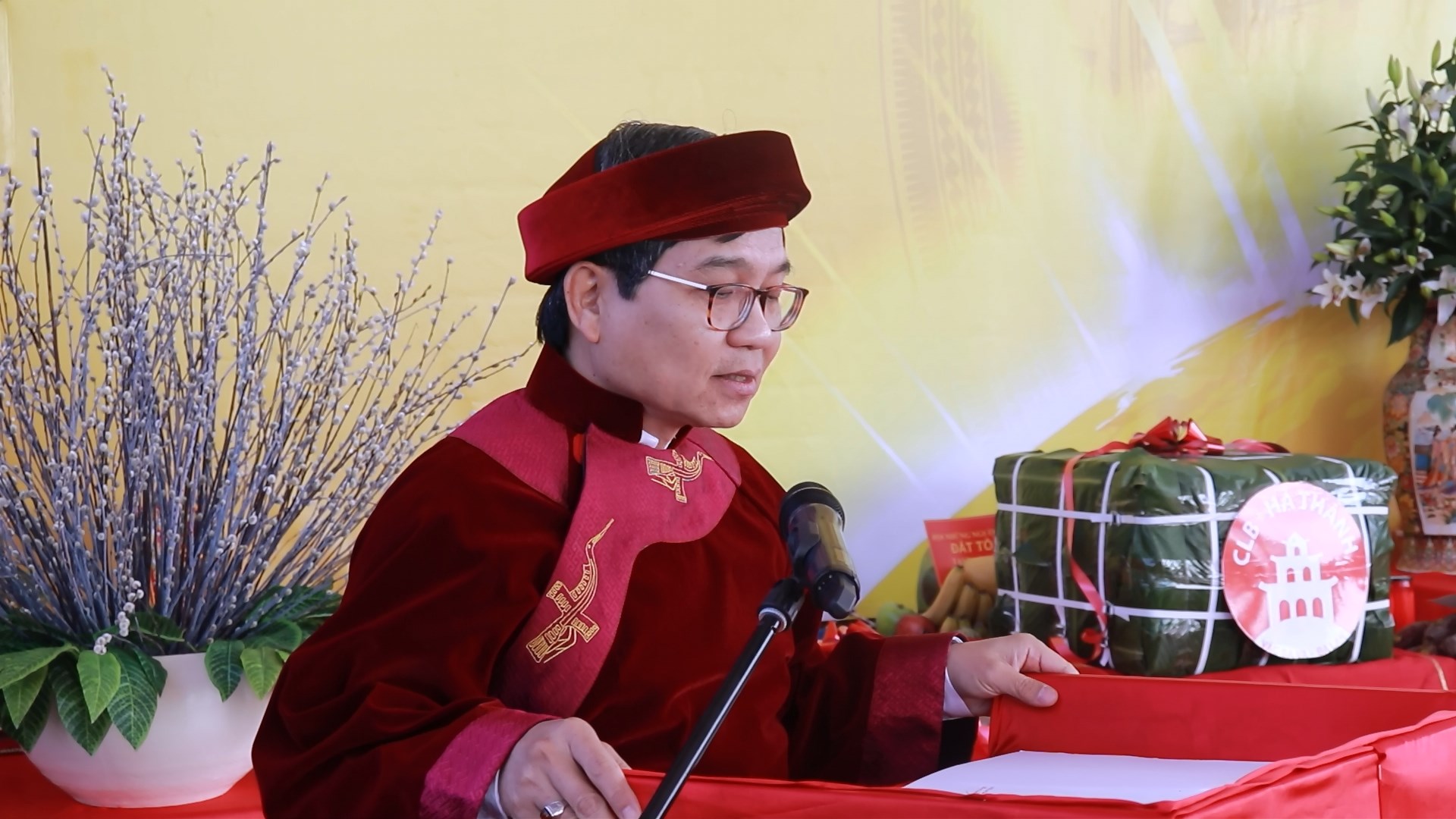 Trong không khí trang nghiêm, thành kính chủ lễ đang hương và đọc bài Tế Lễ vua Hùng..