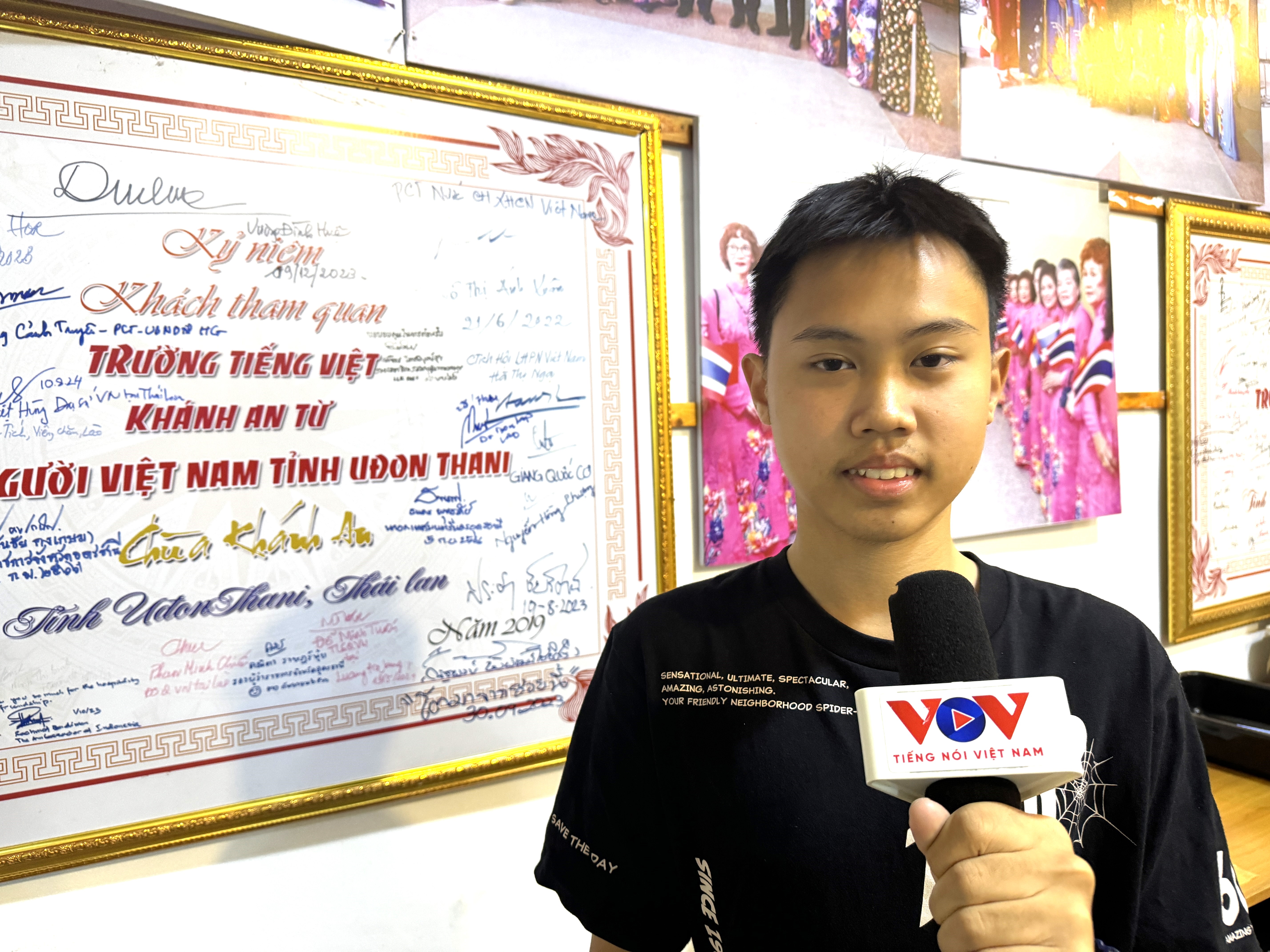 Không phụ sự dạy dỗ của thầy cô trường Khánh An, em Thanakorn, tên tiếng Việt là Huy Hoàng, đã giành giải Nhất với điểm tuyệt đối 30/30 môn viết và nói tiếng Việt tai cuộc thi Nói tiếng Việt Spelling Bee 2024 của trường Đại học Maha Sarakham ở Đông Bắc Thái Lan. Huy Hoàng nănm nay 16 tuổi, học lớp 10 ở trường Udonpittayanukoon. Hoàng quyết tâm học thật tốt để sau này có thể góp phần nhỏ bé xây dựng Việt Nam - quê hương mà ông bà, cha mẹ em vẫn luôn nhắc trong những câu chuyện thường ngày. Em cho biết: "Em đã học tiếng Việt được 6 năm, chủ yếu học ngoài giờ học trên lớp. Lúc đi học trên tỉnh Udon Thani thì em học tiếng Việt với cô giáo Oanh ở Vietnam Town. Nếu có điều kiện, em cũng muốn được đi dạy tiếng Việt và góp sức nhỏ bé cho Việt Nam”.