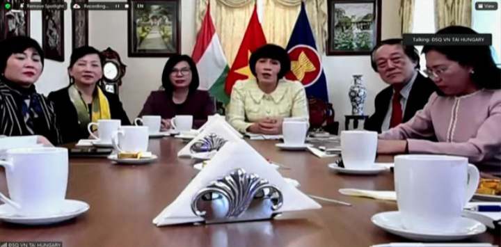 Bà Phan Bích Thiện, kiều bào Hungari phát biểu tại điểm cầu ở nước ngoài |