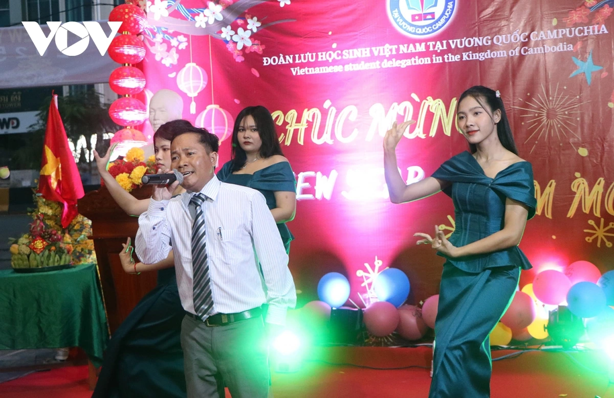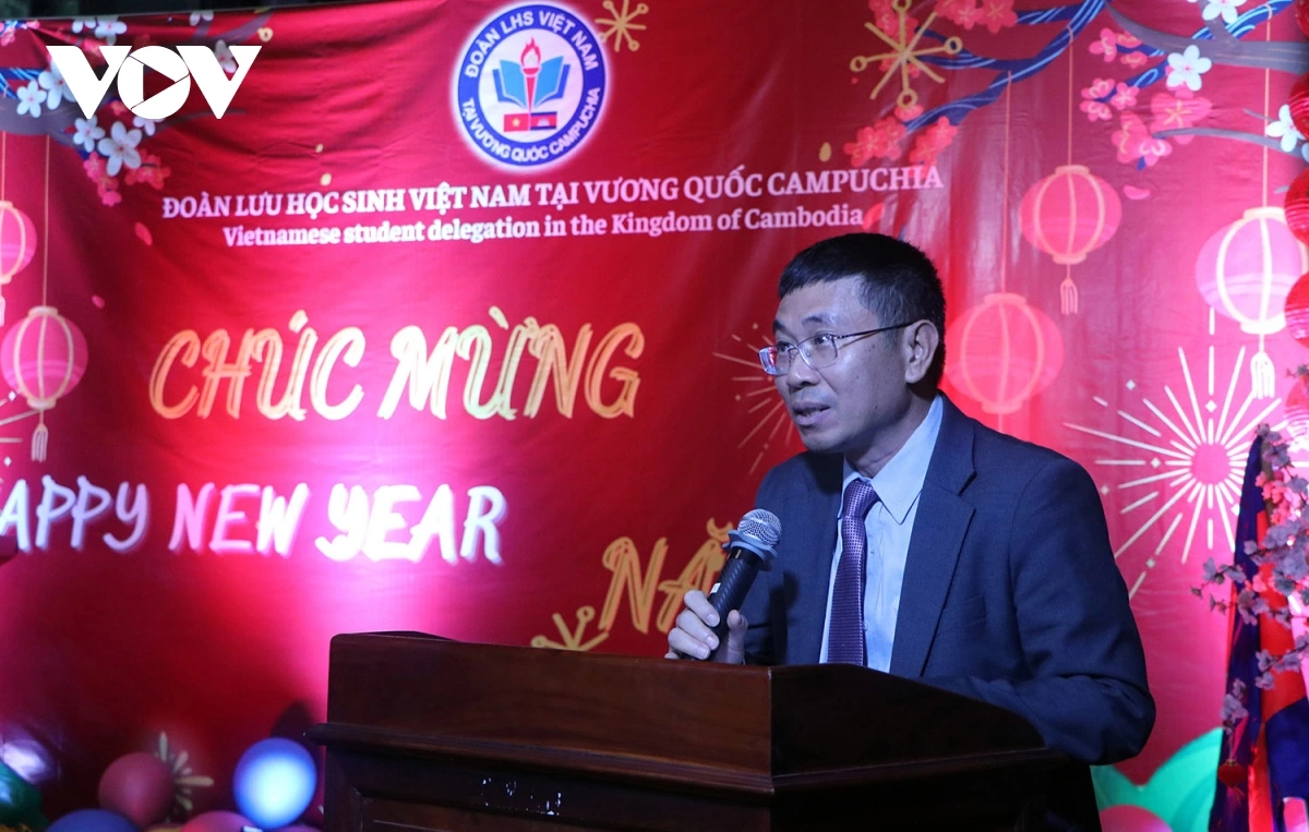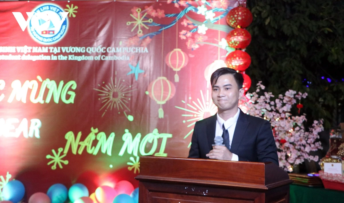 Trong không khí vui tươi, đầm ấm chào đón mùa xuân mới, em Lâm Tuấn Vũ, Trưởng đoàn lưu học sinh Việt Nam tại Campuchia nhấn mạnh tầm quan trọng của việc gìn giữ bản sắc văn hóa dân tộc ngay cả khi ở xa quê hương, đồng thời khẳng định sự hỗ trợ và quan tâm từ phía chính phủ Việt Nam và Campuchia đối với các sinh viên lưu học sinh Việt Nam tại Campuchia.