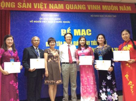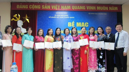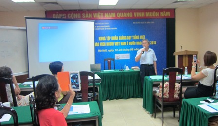 (VOV5) - Tiếp cận với phương pháp giảng dạy và tài liệu được xây dựng riêng cho việc dạy và học tiếng Việt ở nước ngoài – đó là điều mà các học viên đã nhận được thông qua khóa tập huấn giảng dạy tiếng Việt cho giáo viên người Việt Nam ở nước ngoài, do Ủy ban Nhà nước về người Việt Nam ở nước ngoài (Bộ Ngoại giao) phối hợp với Bộ Giáo dục và Đào tạo tổ chức mới đây tại Hà Nội.