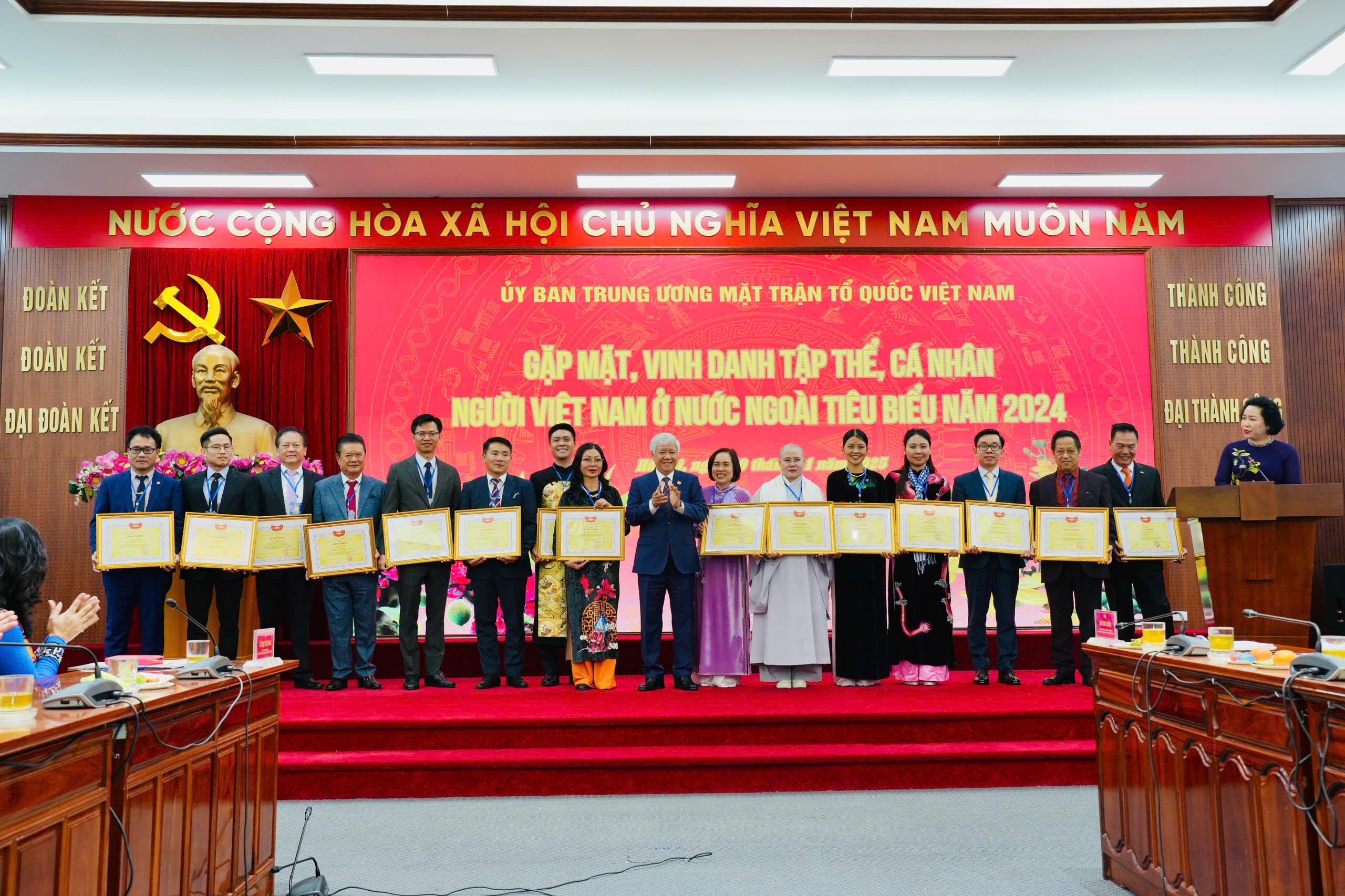 Uỷ ban Trung ương Mặt trận Tổ quốc Việt Nam trao bằng khen cho 18 cá nhân kiều bào đã có thành tích xuất sắc trong công tác cộng đồng và hướng về đất nước. |