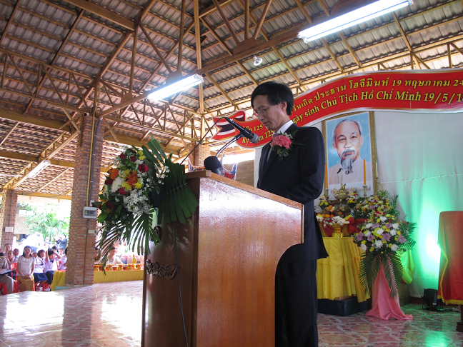 Phát biểu tại buổi lễ mít tinh, Đại sứ Việt Nam tại Thái Lan Nguyễn Tất Thành cho biết, tại Thái Lan, hàng năm, sinh nhật Bác là một sự kiện trọng đại được tổ chức tại nhiều địa phương, thể hiện lòng tôn kính của nhân dân Thái Lan, đặc biệt là của Việt kiều, đối với Chủ tịch Hồ Chí Minh: "Sinh nhật Bác năm nay, chúng ta thành kính nhớ tới lời dạy của Người: “Đoàn kết, đoàn kết, đại đoàn kết, thành công, thành công, đại thành công.” Để xây dựng cộng đồng Việt kiều ngày càng thành công, đóng góp tích cực cho cả hai dân tộc Thái – Việt, chúng ta phải đặt lợi ích chung, lợi ích của cộng đồng, lên trên hết. Tôi đề nghị các Hội người Việt mở rộng tấm lòng bao dung hơn nữa, tạo điều kiện để tất cả kiều bào đều có thể tham gia đóng góp, phát triển cộng đồng. Tôi cũng đề nghị toàn thể bà con đoàn kết xung quanh Hội người Việt, coi Hội như ngôi nhà chung của Việt kiều, cùng chung lòng, chung sức xây dựng. Có như vậy, chúng ta mới xứng đáng là con cháu của Bác Hồ."