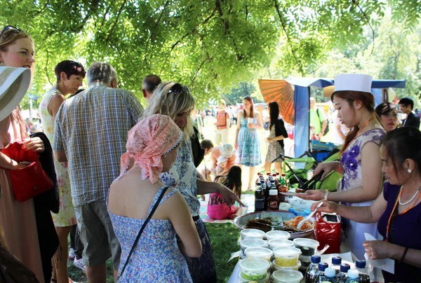 | Các món ăn Việt thu hút thực khách trong ngày văn hóa các dân tộc thiểu số tại Praha. (Ảnh: Quang Vinh/Vietnam+) |