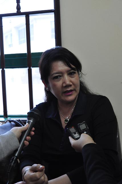 Bà Stephanie Saint Albert trả lời phỏng vấn của các nhà báo
