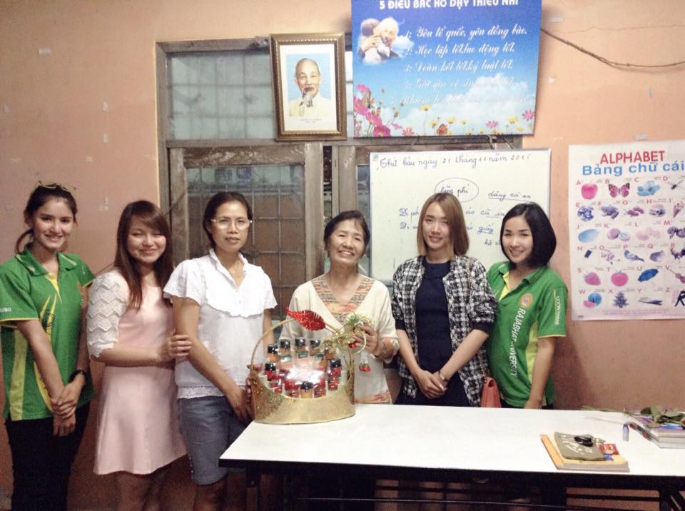 | Các học sinh tặng quà cho bà Nguyễn Thị Xuân Oanh nhân ngày nhà giáo Việt Nam 20/11 |
