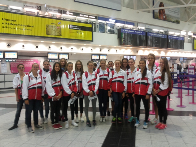 | My Lan cùng đội tuyển quốc gia về bơi nghệ thuật tại sân bay trước khi lên đường đi thi |