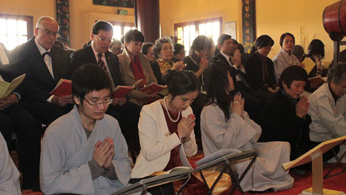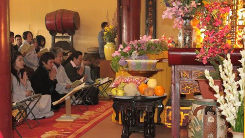 | Các tăng ni phật tử kính cẩn làm lễ |