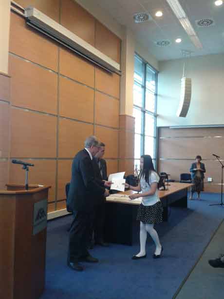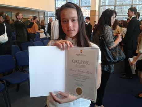 (VOV5)- Như chúng tôi đã đưa tin, lần đầu tiên có một học sinh gốc Việt tại Hungary đã đoạt giải thưởng "Học sinh xuất sắc, vận động viên xuất sắc Cộng Hòa Hungary năm 2011" . Đó là Thuróczy Karolina My Lan. Ngày 5/4 vừa qua, Bộ trưởng Bộ Nguồn lực Hungary đã trực tiếp trao giải thưởng này cho My Lan.