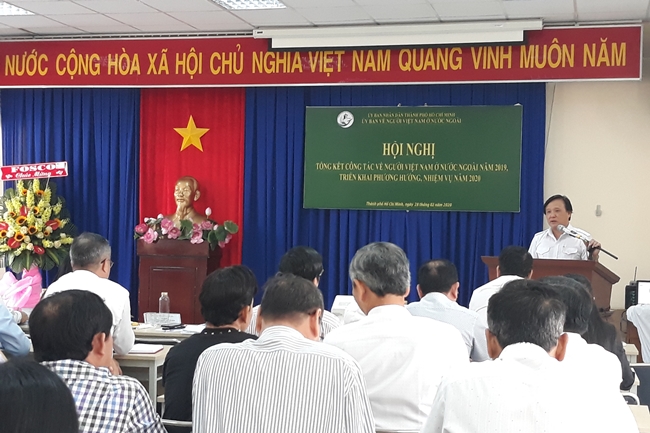 Tại Hội nghị triển khai phương hướng, nhiệm vụ năm 2020 tổ chức sáng 28/2, Ủy ban về Người Việt Nam ở nước ngoài Thành phố Hồ Chí Minh đề ra nhiệm vụ trọng tâm tiếp tục đổi mới hoạt động mang tính thiết thực, nâng cao hiệu quả vai trò cầu nối, phối hợp với các hội, đoàn và các ngành chức năng triển khai các chương trình công tác đối với người Việt Nam ở nước ngoài trên địa bàn Thành phố đạt kết quả tích cực.