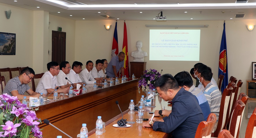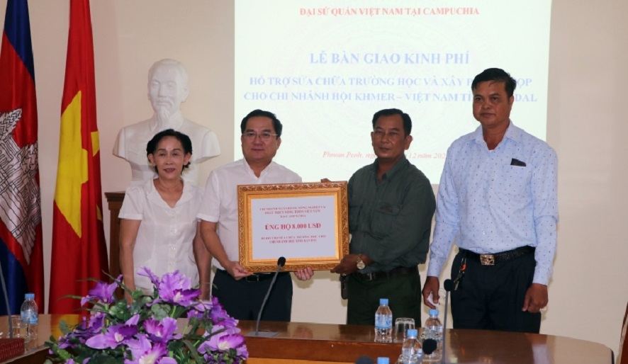 Sáng ngày 09/12, Quỹ hỗ trợ cộng đồng thuộc Đại sứ quán Việt Nam phối hợp cùng Chi nhánh Ngân hàng Nông nghiệp Việt Nam tại Campuchia đã tổ chức lễ bàn giao kinh phí cho Chi hội Khmer-Việt Nam tỉnh Kandal hỗ trợ nâng cấp trường học và xây mới trụ sở chi hội.