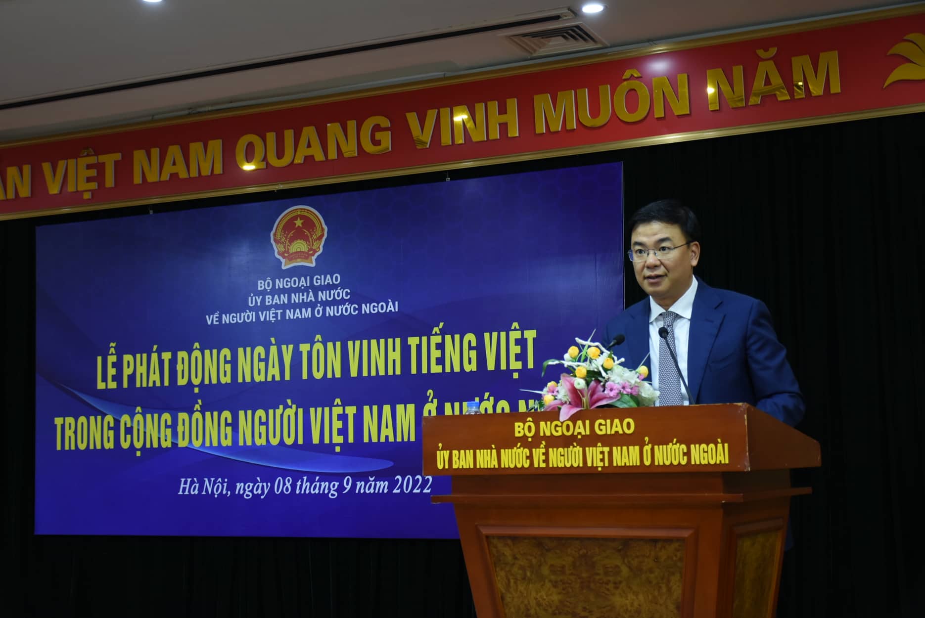 Phát biểu khai mạc buổi lễ, ông Phạm Quang Hiệu, Thứ trưởng Bộ Ngoại Giao, Chủ nhiệm Ủy ban Nhà nước về người Việt Nam ở nước ngoài, nhấn mạnh, việc gìn giữ tiếng Việt là nhiệm vụ quan trọng có ý nghĩa thực tiễn, giá trị khoa học và nhân văn sâu sắc: “Việc phê duyệt đề án và lựa chọn ngày 8/9 là ngày tôn vinh tiếng Việt cũng là thể hiện cụ thể hóa chủ trương chính sách của Đảng, Nhà nước đối với công tác về người Việt Nam ở nước ngoài, thể hiện trách nhiệm, tình cảm của Đảng Nhà nước trong việc chăm lo cho kiều bào. Ngoài ra, chúng tôi hi vọng đây là một dấu mốc quan trọng trong đời sống tinh thần của người Việt Nam ở nước ngoài,qua đó nâng cao nhận thức của mỗi kiều bào đối với tiếng Việt góp phần gìn giữ, phát huy bản sắc dân tộc, xây dựng cộng đồng ổn định, vững mạnh, luôn hướng về quê hương đất nước”.