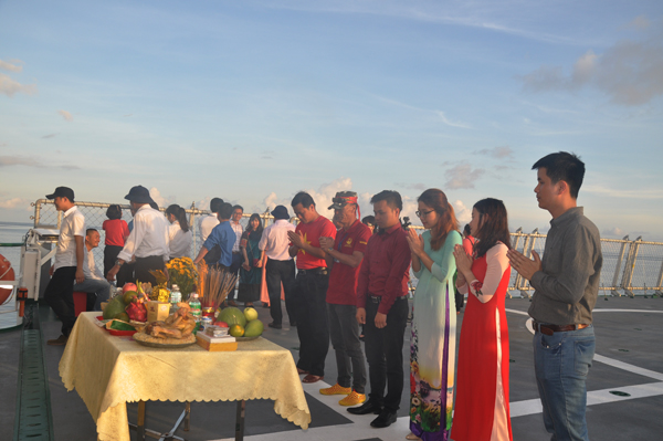 Kiều bào tưởng nhớ các Vua Hùng trên tàu KN 491 tại quần đảo Trường Sa. |