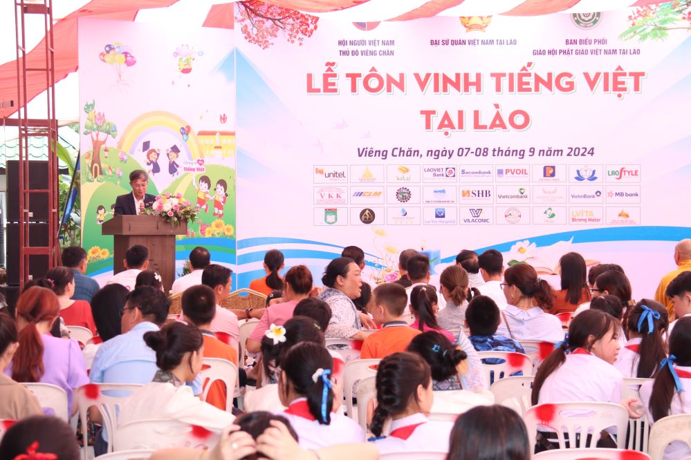 Phát biểu tại buổi lễ, ông Phan Minh Chiến, Đại biện lâm thời, Đại sứ quán Việt Nam tại Lào, nhấn mạnh tiếng Việt là tài sản riêng vô cùng quý giá của dân tộc Việt Nam. Thời gian qua, Đại sứ quán Việt Nam tại Lào đã phối hợp với Hội người Việt Nam ở thủ đô Vientiane và Ban Điều phối Giáo hội Phật giáo Việt Nam tại Lào tổ chức nhiều hoạt động có ý nghĩa, giúp lan tỏa mạnh mẽ tình yêu tiếng Việt trong kiều bào và người dân Lào, trong đó có cuộc thi “Sứ giả tiếng Việt ở nước ngoài”. Thông qua cuộc thi này, Ban tổ chức mong muốn nâng cao hơn nữa nhận thức của cộng đồng người Việt Nam tại Lào đối với tiếng Việt đặc biệt là việc gìn giữ và phát huy bản sắc văn hóa dân tộc, góp phần xây dựng cộng đồng người Việt Nam ở Lào ổn định, đoàn kết, vững mạnh và hướng về quê hương.
