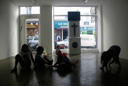 | Một chiếc TV, một chiếc máy giặt, một chiếc tủ lạnh có gắn cây thập tự bằng gỗ là những vật dụng mà Danh Võ chụp trong tác phẩm của mình. |