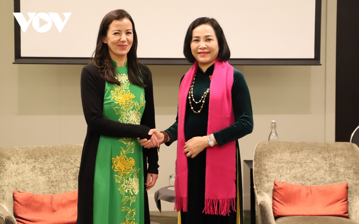 Nghị sĩ New Zealand Phạm Thị Ngọc Lan (trái) gặp Phó Chủ tịch Quốc hội Nguyễn Thị Thanh (phải) tại thủ đô Wellington, New Zealand. Ảnh: Việt Nga/VOV. |