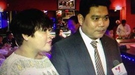 Vợ chồng anh Linh chị Nhung - trưởng ban tổ chức buổi quyên góp ủng hộ đồng bào miền Trung. (Ảnh: Đỗ Sinh/Vietnam+)