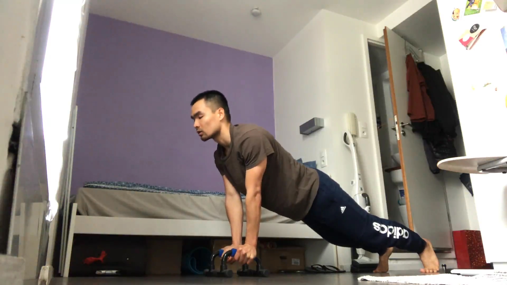 Thời gian cách ly tại nhà ( ở Pháp) Tiến Tâm chăm chỉ tập thể dục. Ảnh nvcc |