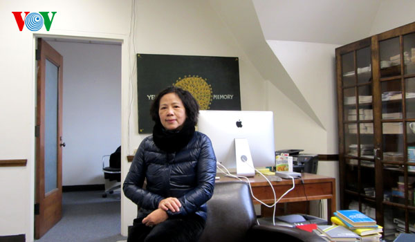 | PGS. Trần Lưu Vân Hiền, mẹ GS Ngô Bảo Châu tại phòng làm việc của con trai |
