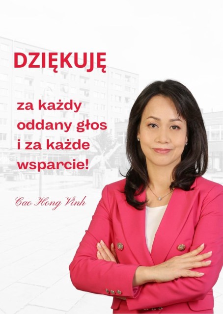 Bà Cao Hồng Vinh, người Ba Lan gốc Việt, vừa trúng cử vào Hội đồng nhân dân quận Ochota, thủ đô Warszawa (Ba Lan), nhiệm kỳ 2024-2029. Bà Cao Hồng Vinh đã trở thành người Việt Nam đầu tiên trúng cử vào chính quyền địa phương Ba Lan.