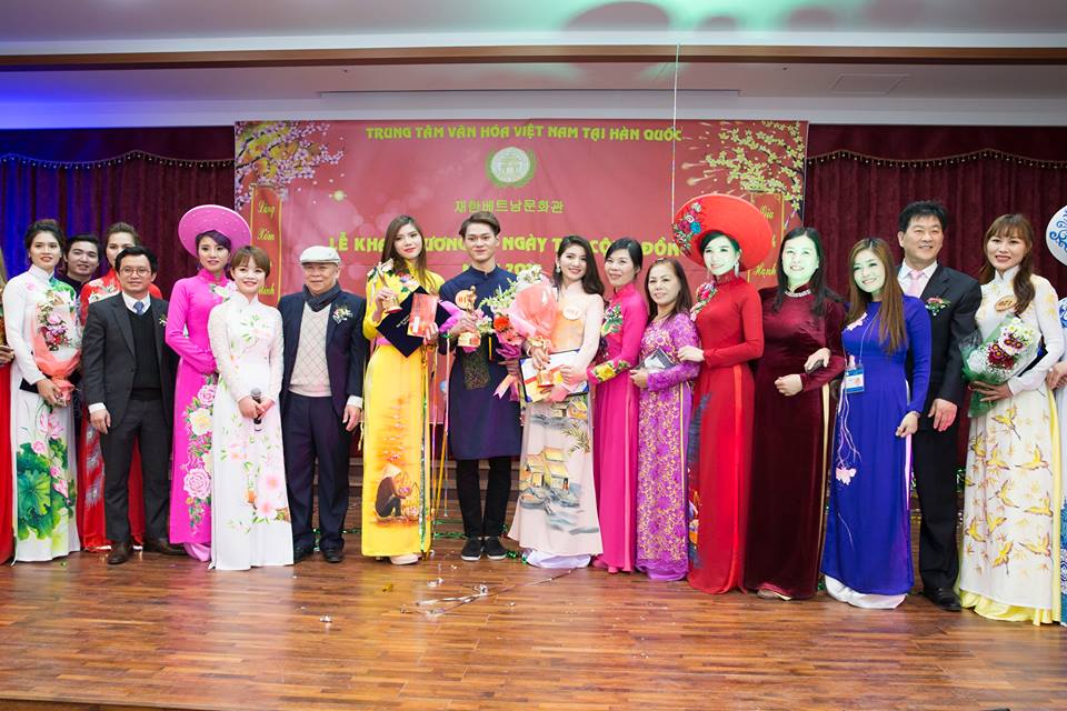 | Chị Anh Thư cùng các thí sinh trong cuộc thi "Duyên dáng Việt Nam" được tổ chức nhân dịp khai trương Trung tâm văn hóa Việt Nam tại Hàn Quốc. |