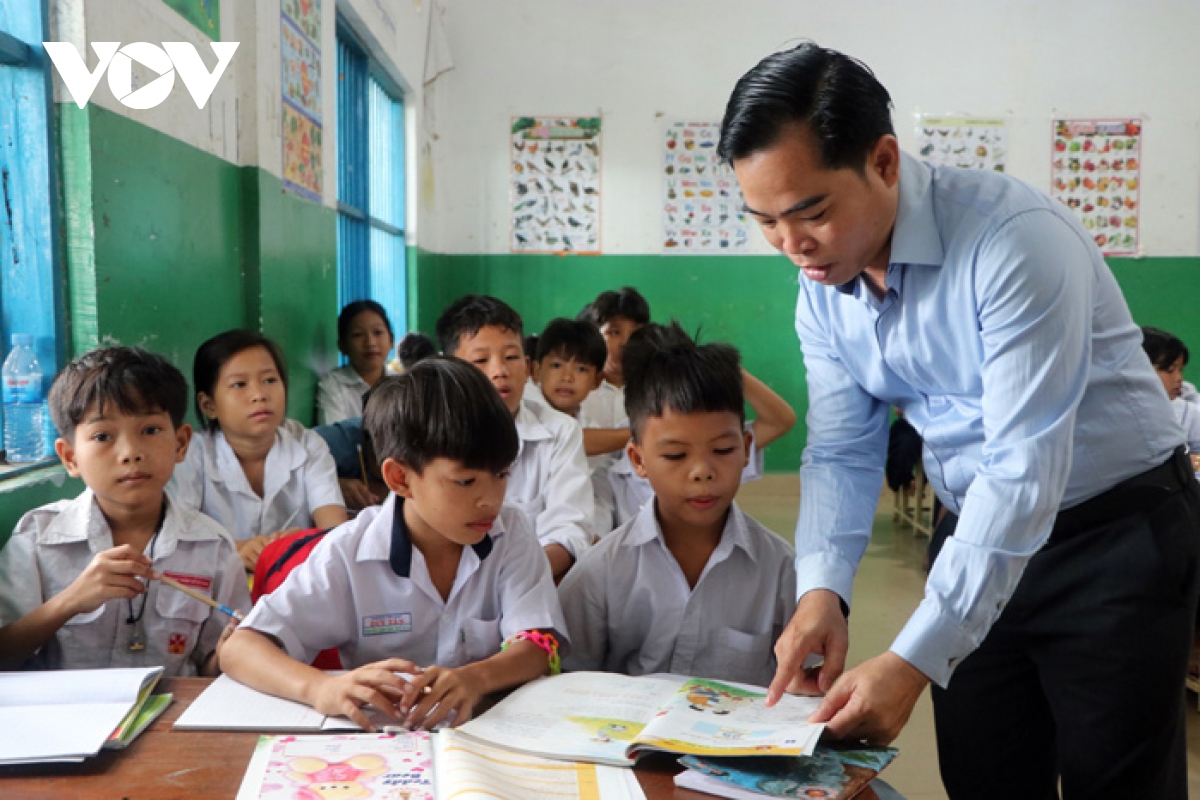 “Ưu tiên hàng đầu là dạy các em biết chữ. Việc dạy tiếng Việt ở ngôi trường này thì việc biết đọc, biết viết là một chuyện. Điều quan trọng là mình muốn giúp cho các em hiểu được nguồn cội, nguồn gốc, giữ được ngọn lửa dân tộc Việt Nam. Bên cạnh đó, mình lồng ghép những bài về phong tục tập quán của người Việt Nam, lịch sử Việt Nam với những nội dung nhẹ nhàng dễ hiểu. Còn về lớp học tiếng Campuchia/Khmer thì mình cũng áp dụng chương trình của nước sở tại”, thầy Hào cho hay.