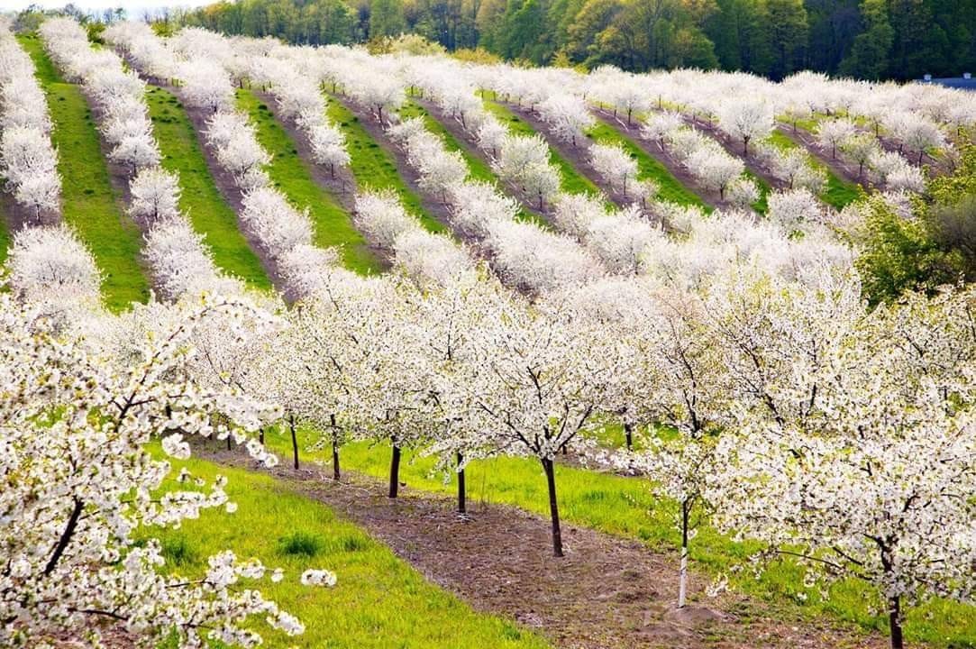 Mùa hoa táo. Những vườn táo tại ngoại ô thành phố Wernigerode tràn ngập một màu trắng - Ảnh: Lê Quang Vinh |