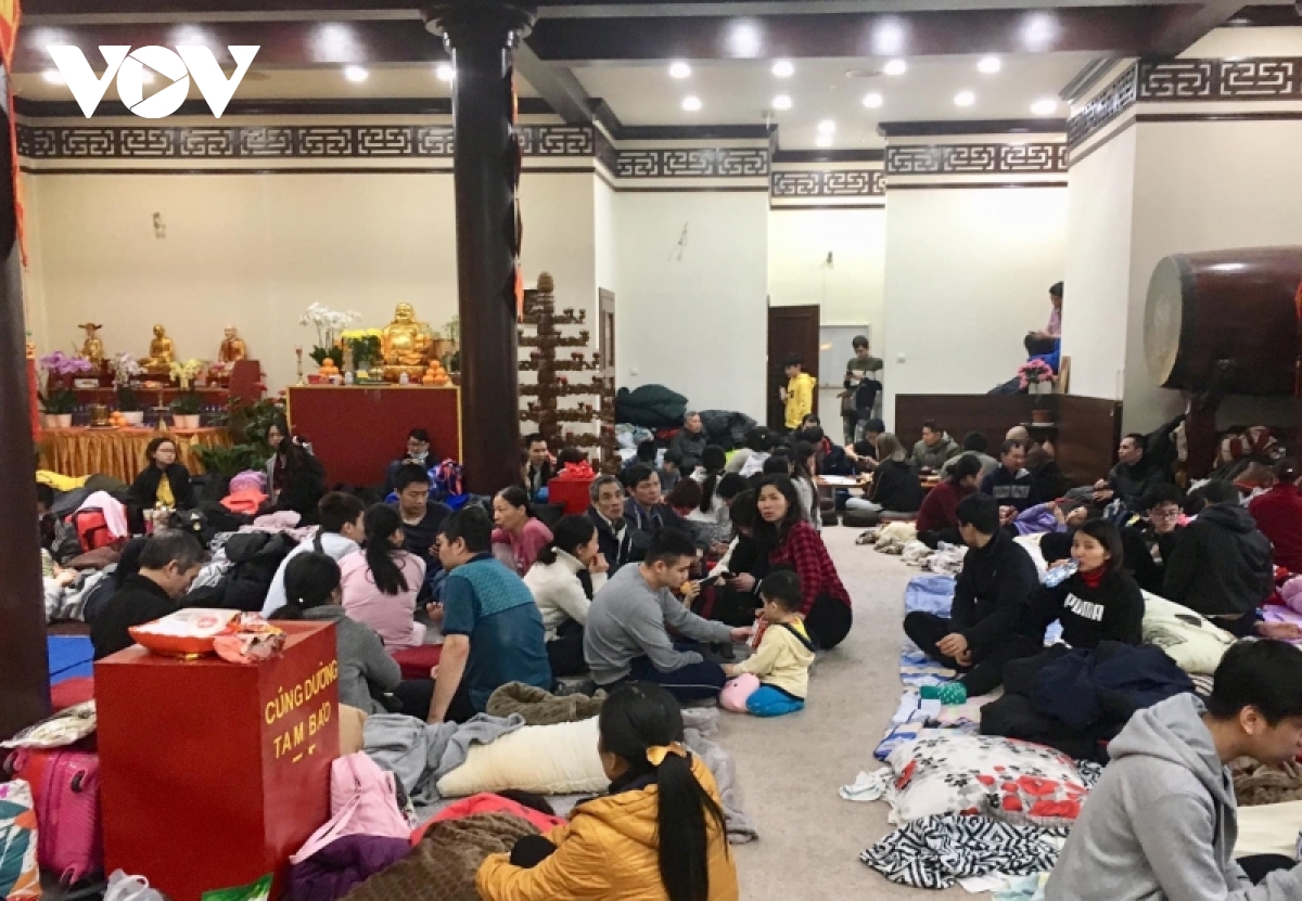 Là người trực tiếp tiếp đón, thu xếp chỗ ăn ở tại chùa Nhân Hoà cho hàng trăm bà con chạy nạn từ Ukraine sang Ba Lan trong những ngày qua, ông Bùi Văn Dư, quyền Chủ tịch Trung tâm Văn hoá Phật giáo Việt Nam tại Ba Lan cho biết: “Bà con đến đây ở thì khi tinh thần ổn định rồi thì liên lạc một số gia đình thân quen và gia đình phát tâm chở bà con về ở tản ra để đỡ áp lực gánh nặng cho chùa. Một số người tìm đường sang Đức có bài con người thân bên đó, tìm đường định cư hoặc tìm việc làm bên đó. Một số người được bà con cưu mang xin việc, học việc, nuôi ăn ở luôn tại chỗ làm việc. Một số người thì được Đại sứ quán hỗ trợ để nối giấy tờ trở về Việt Nam, đã đăng ký chuyến bay miễn phí, chờ đợt tới này về”.