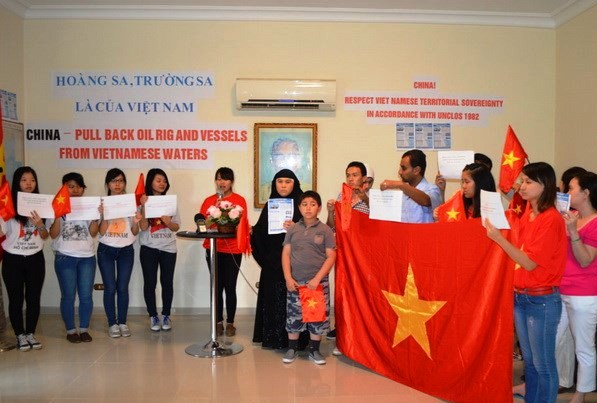 (VOV5) - Ngày 24/5, Đại sứ quán, các cơ quan đại diện của Việt Nam tại Ai Cập, cộng đồng người Việt Nam đang sinh sống và học tập tại Ai Cập tổ chức mít-tinh bày tỏ sự ủng hộ đối với Đảng, Nhà nước và Chính phủ Việt Nam trong cuộc đấu tranh bảo vệ chủ quyền lãnh thổ thiêng liêng của Tổ quốc, cực lực lên án hành động của Trung Quốc hạ đặt giàn khoan trái phép trên vùng đặc quyền kinh tế của Việt Nam.