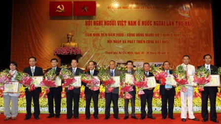 | Các tập thể, cá nhân có nhiều đóng góp tích cực cho hoạt động Cộng đồng Người Việt Nam ở nước ngoài nhận giấy khen của Ủy ban Nhà nước về người Việt Nam ở nước ngoài |