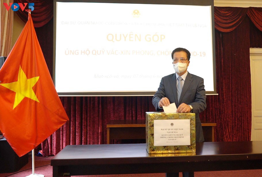 Hưởng ứng lời kêu gọi của Chủ tịch nước, Thủ tướng Chính phủ và lãnh đạo Bộ Ngoại giao, ngày 7/6, tại trụ sở Đại sứ quán Việt Nam tại LB Nga đã tổ chức lễ phát động “Quyên góp ủng hộ Quỹ vaccine phòng, chống COVID-19”.