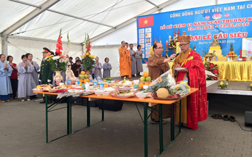 Chiều 24/07/2016 tại hội trường nhà bạt, TTTM Đồng Xuân (Berlin, Đức), đông đảo các tổ chức, hội đoàn, doanh nghiệp, các gia đình thân nhân liệt sỹ, những thương, bệnh binh, báo giới, tăng ni, Phật tử và hàng trăm bà con cộng đồng người Việt đã tề tựu đông đủ dự mít tinh kỷ niệm 69 năm ngày Thương binh - Liệt sỹ và Đại lễ cầu siêu cho những anh hùng liệt sỹ, những người đã mất trong chiến tranh. Tới tham dự buổi lễ còn có ông Nguyễn Việt Cường- Tham tán Công sứ ĐSQ Việt Nam tại Đức.
