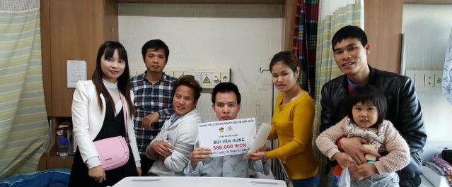 (VOV5) - Ngày 27/3/2016, ban quản trị nhóm “Chúng tôi là những người bạn tại Hàn Quốc” cùng các thành viên đã trao quà tặng là 58 000 won, tương đương với 11 triệu đồng Việt Nam cho anh Bùi Văn Hùng quê ở tỉnh Thanh Hoá.