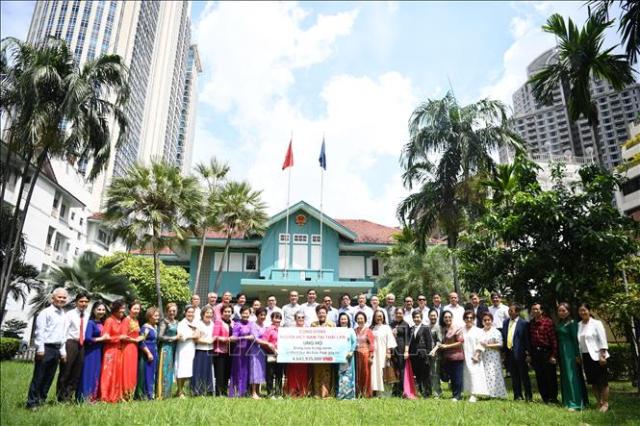 Kiều bào Thái Lan trao tượng trưng số tiền hơn 4,6 tỷ đồng cho Đại sứ quán Việt Nam tại Thái Lan. Ảnh: TTXVN |