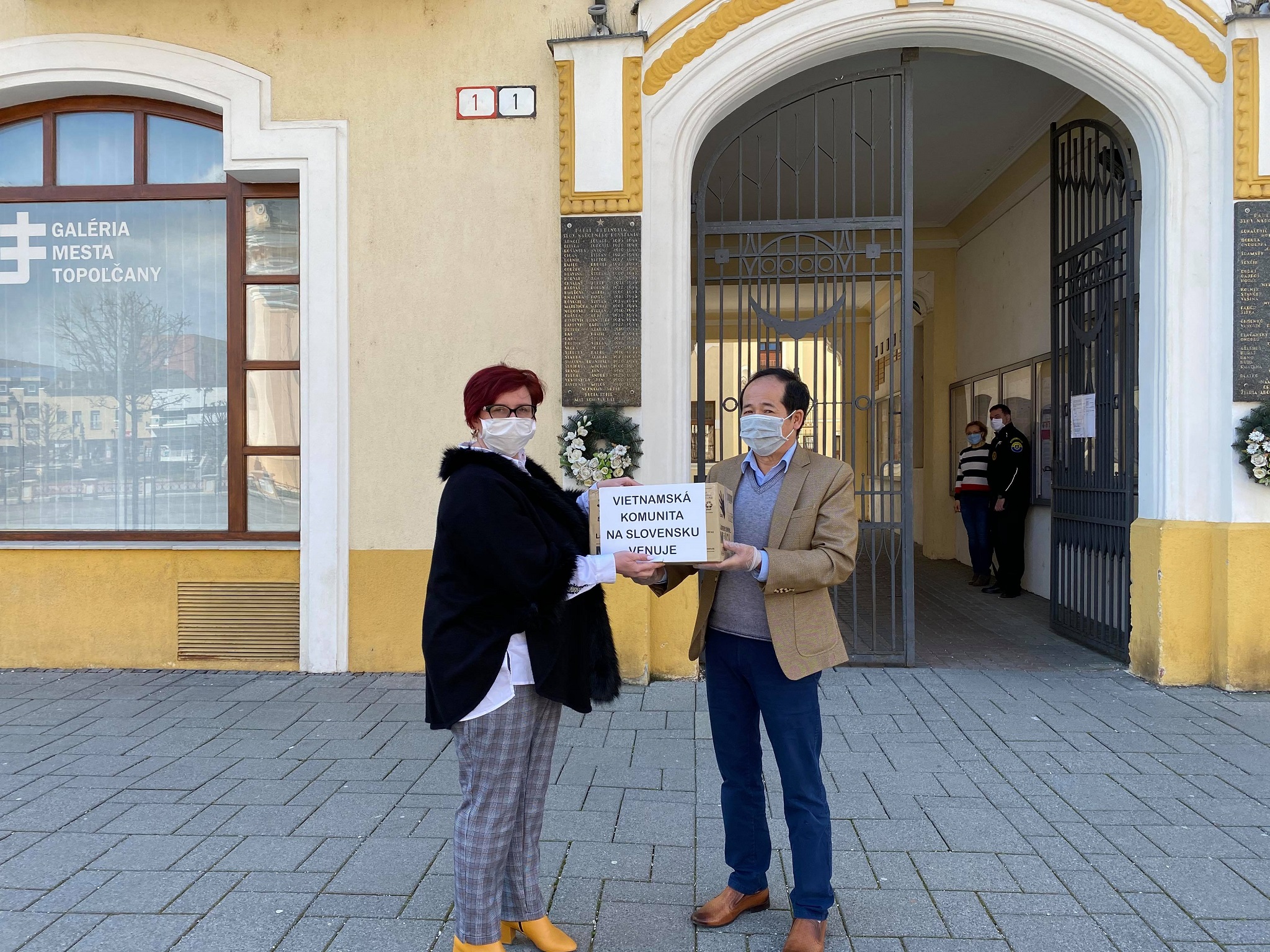 Ngày 1/4, ông Nguyễn Xuân Trường, ở thành phố Topolcany, Cộng hòa Slovakia, cho biết, ông vừa thay mặt cho bà con người Việt đang sinh sống ở đây tặng cho người dân thành phố Topolcany các vật dụng y tế gồm 300 khẩu trang, 300 găng tay và 300 lọ cồn sát khuẩn.