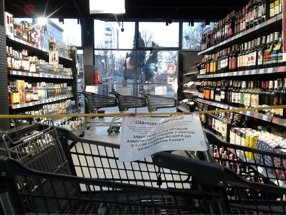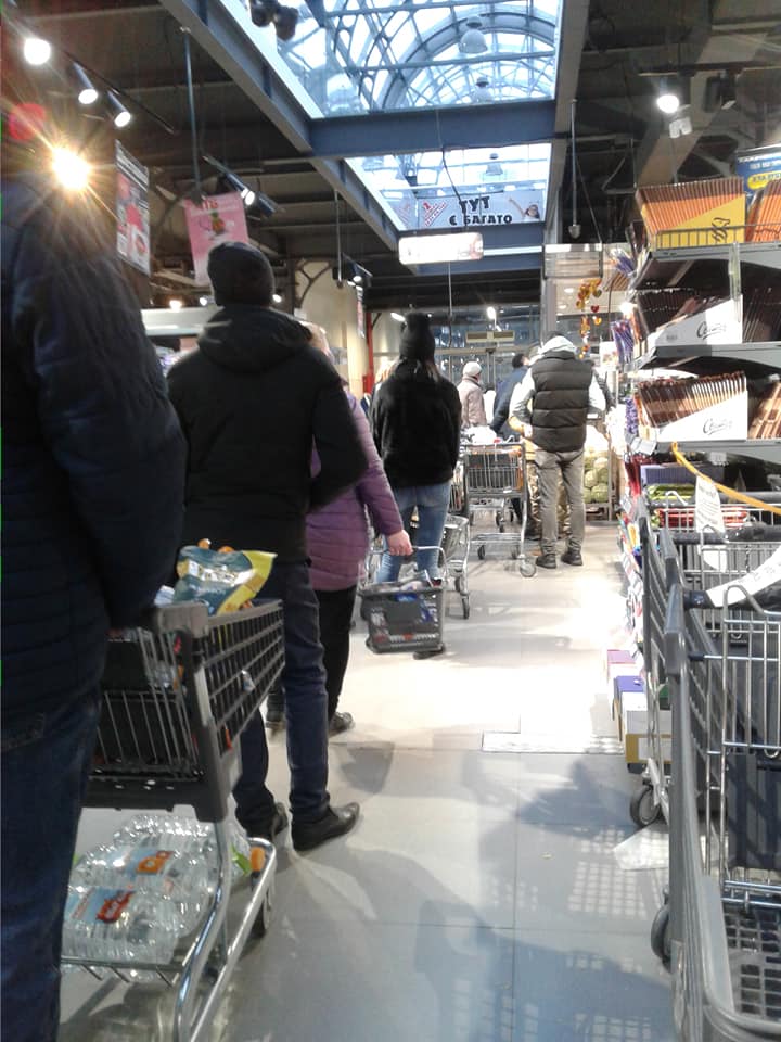 Người dân vẫn bình tĩnh xếp hàng mua đồ ở siêu thị Kiev sáng ngày 24/2 - Ảnh: Hoa Lý |