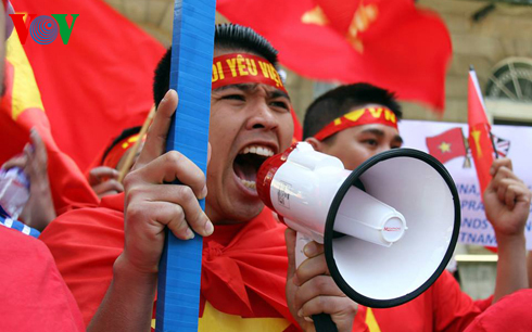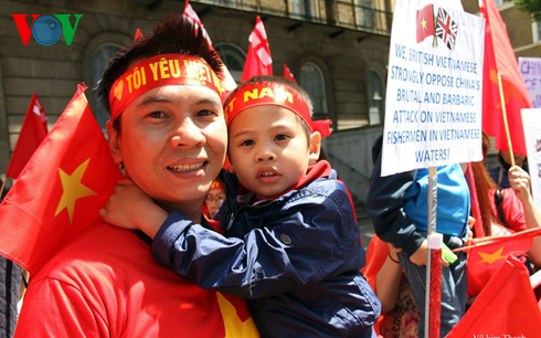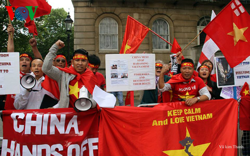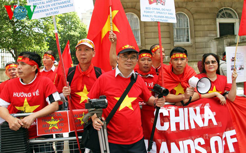 Đông đảo kiều bào đã giương cao quốc kỳ cùng nhiều biểu ngữ được viết bằng tiếng Việt, tiếng Anh và tiếng Trung khẳng định chủ quyền của Việt Nam đối với hai quần đảo Hoàng Sa và Trường Sa, yêu cầu Trung Quốc rút ngay giàn khoan Hải Dương – 981 ra khỏi vùng biển Việt Nam.