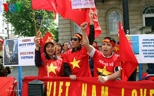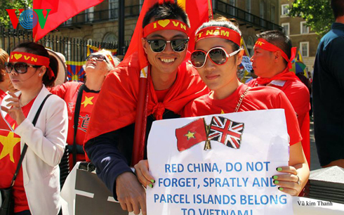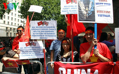 Ngày 17/6, cộng đồng người Việt Nam đang sinh sống, học tập và làm việc tại Anh đã tụ tập trước tòa nhà số 10 trên đường Downing để bày tỏ sự phản đối việc Trung Quốc hạ đặt trái phép giàn khoan Hải Dương-981 trong vùng đặc quyền kinh tế và thềm lục địa của Việt Nam, lên án Trung Quốc vi phạm nghiêm trọng quyền chủ quyền và quyền tài phán của Việt Nam. Cuộc biểu tình được tiến hành đúng lúc Thủ tướng Trung Quốc Lý Khắc Cường đang công du nước Anh.