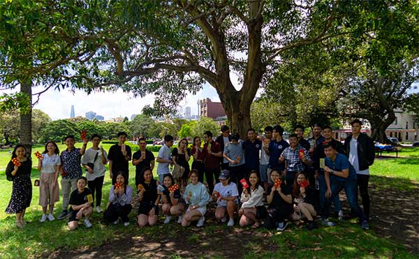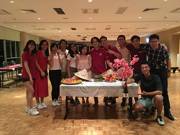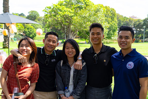 Anh Nguyễn Phúc Bình (thứ 2 từ trái sang) - Chủ tịch Tổng Hội Sinh viên Việt Nam tại Úcvui Tết cổ truyền cùng các bạn sinh viên tại bang NSW. |
