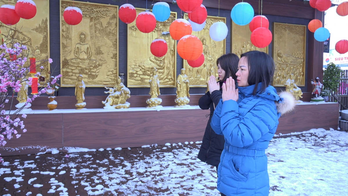 Truyền thống lên chùa cầu phúc, bình an đầu năm mới vẫn được bà con cộng đồng người Việt tại Séc duy trì. |