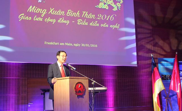 | Ông Nguyễn Hồng Lĩnh, Tổng lãnh sự quán nước CHXHCN Việt Nam tại Frankfurt Main gửi lời chúc Tết đến bà con người Việt ở đây. |