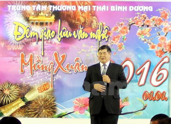 | Đại sứ Đoàn Xuân Hưng chúc Tết tại Trung tâm thương mại Thái Bình Dương. (Ảnh: Mạnh Hùng/Vietnam+) |