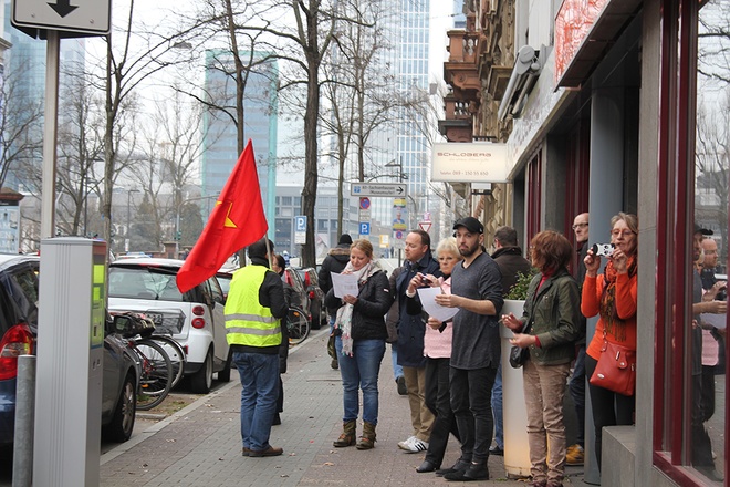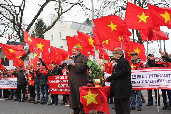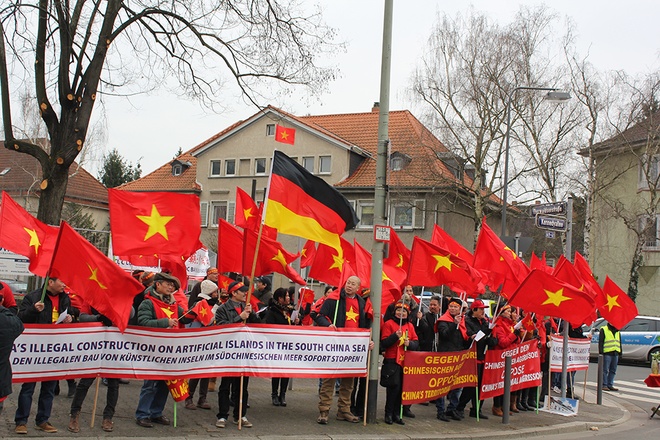 Ngày 28/2, hàng trăm bà con người Việt sống tại thành phố Frankfurt và các vùng lân cận tại Cộng hòa liên bang Đức tổ chức cuộc biểu tình trước Tổng Lãnh sự quán Trung Quốc ở thành phố này nhằm phản đối các hoạt động quân sự gây leo thang căng thẳng của Trung Quốc trên Biển Đông thời gian gần đây.