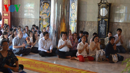 | Đại lễ Vu Lan được nhà sư trụ trì chùa Cảnh Phước (người Thái) và các nhà sư Việt Nam tiến hành |