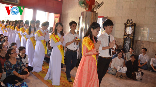 | Nghi lễ Bông hồng cài áo: Hoa màu đỏ được cài để cảm ơn trời đất vì vẫn được phụng dưỡng cha mẹ, còn bông hoa màu trắng như lời nhắn nhủ hãy luôn nhớ và báo hiếu với những ai không còn bậc sinh thành . |