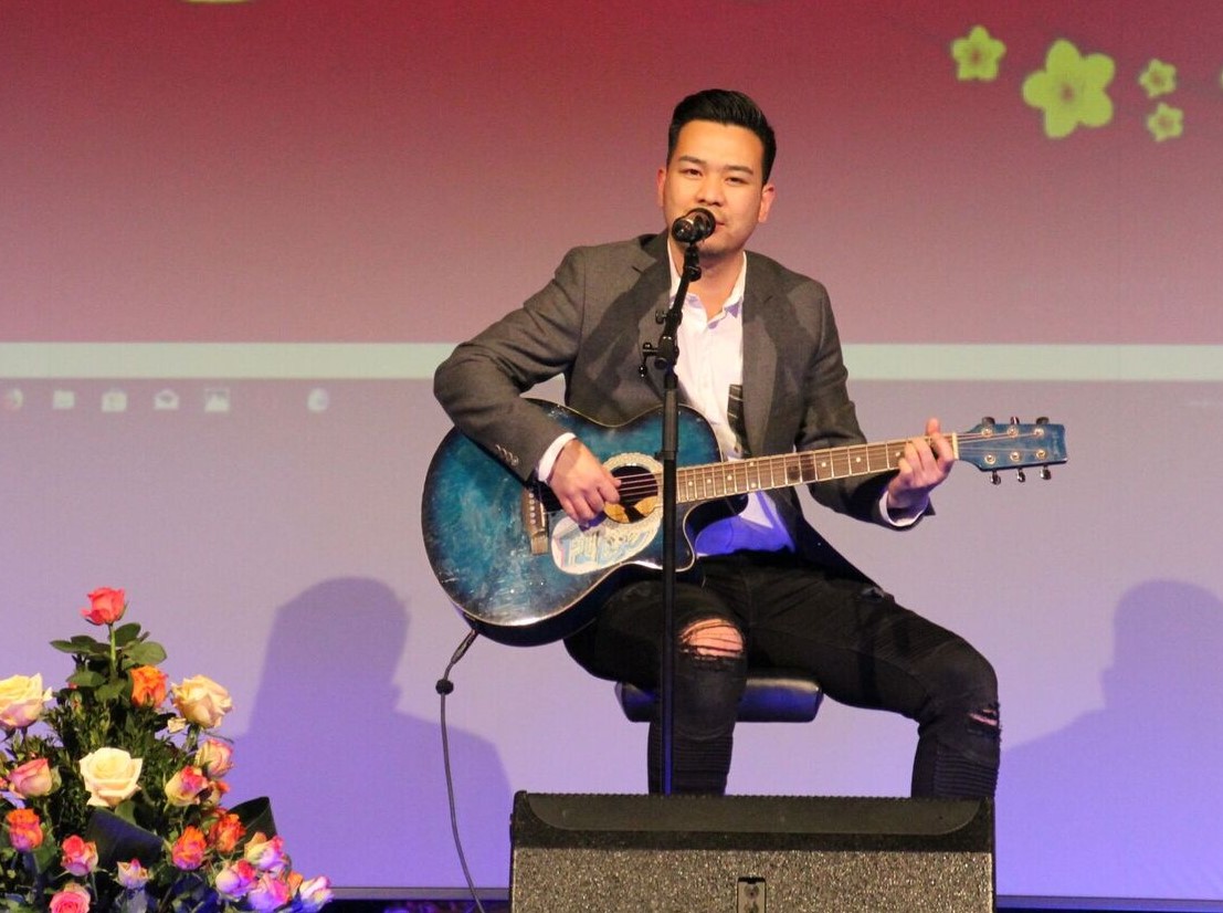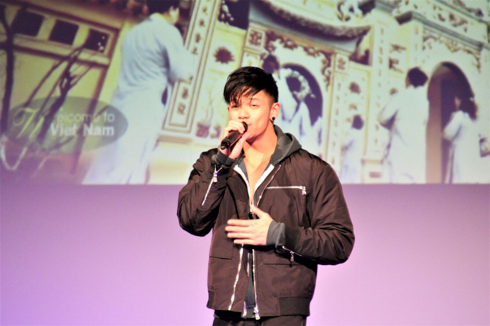 Quán quân Vietnam Idol 2015 Trọng Hiếu hát tại buổi lễ