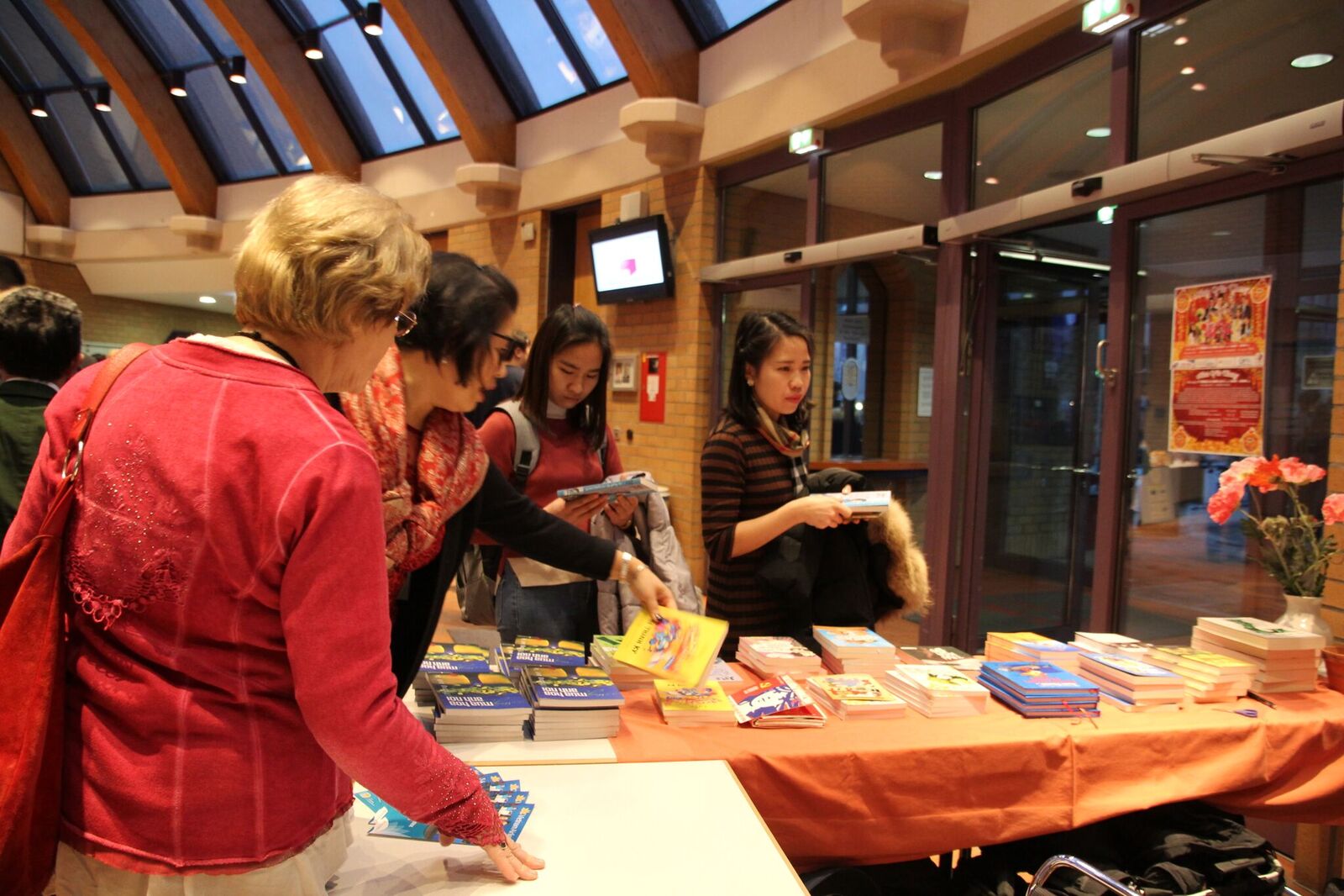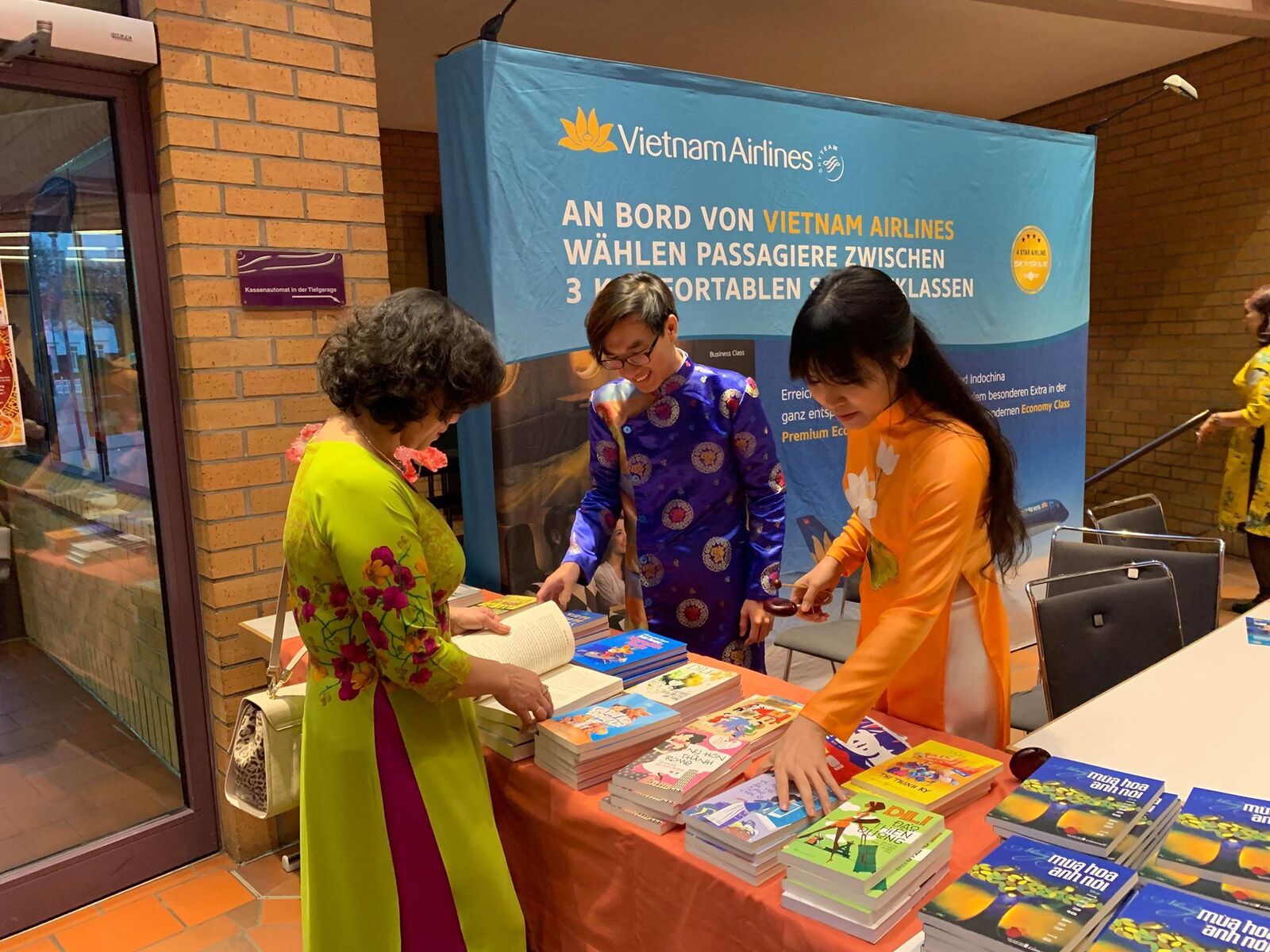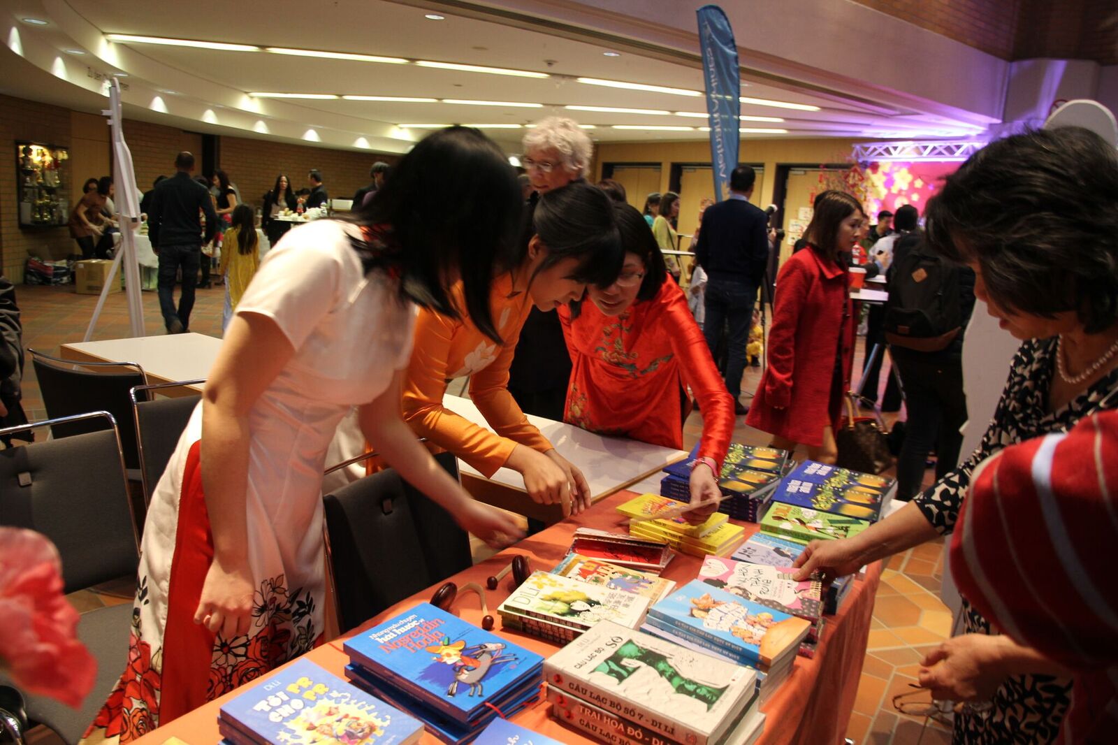 Trong không gian buổi lễ còn có các quầy giới thiệu sách, các gian hàng bán các món ăn truyền thống Việt Nam mang đậm phong vị quê hương.